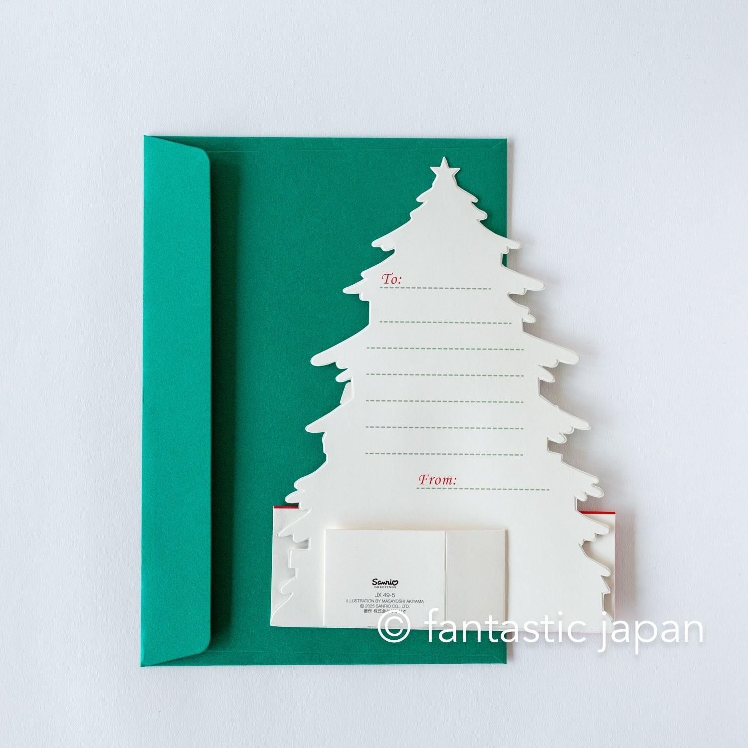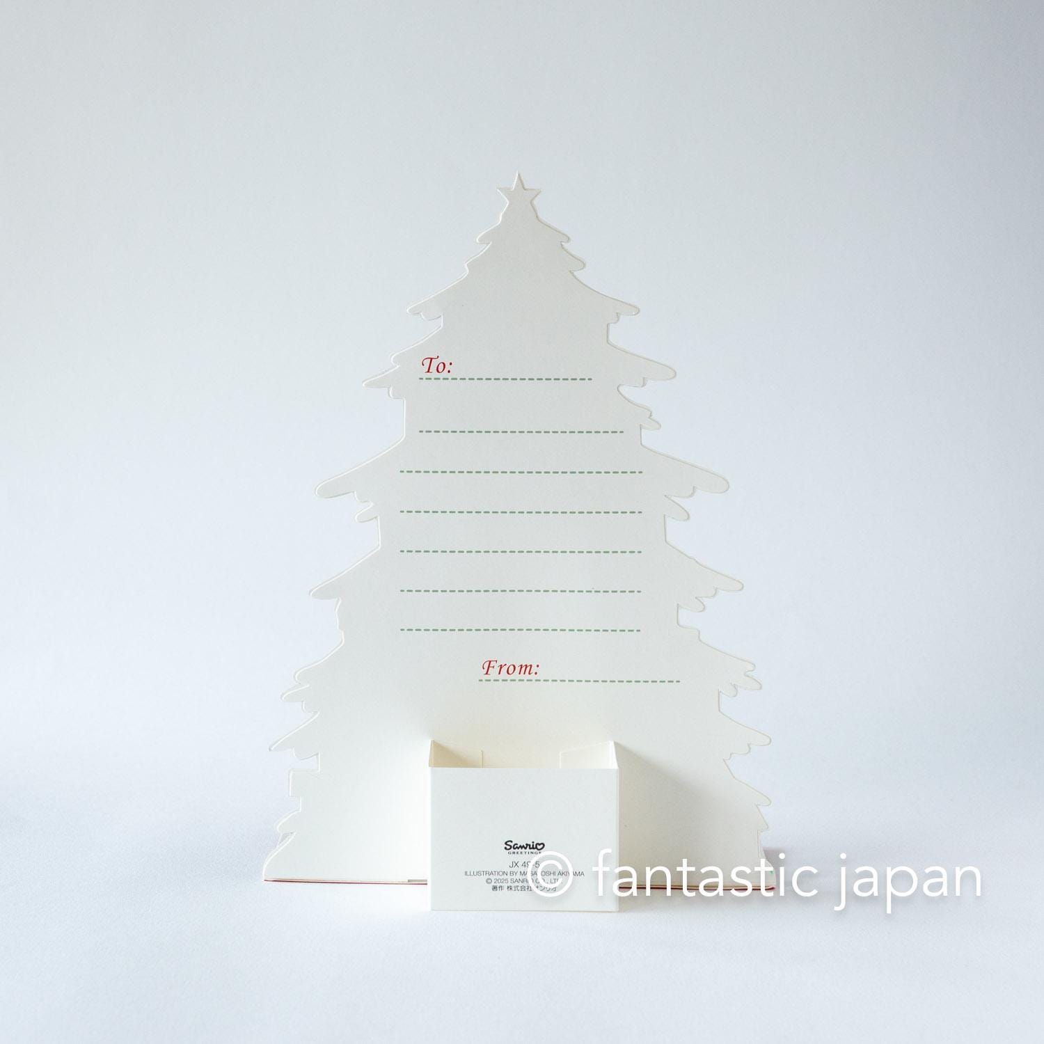 A three-dimensional greeting card designed like a Christmas tree made of a lively city scene filled with holiday cheer. The finely detailed illustrations reveal new discoveries each time you look; glitter accents on the snowy parts of the tree; can be displayed standing; message space on the back; comes with a green envelope; postage required when mailing.
