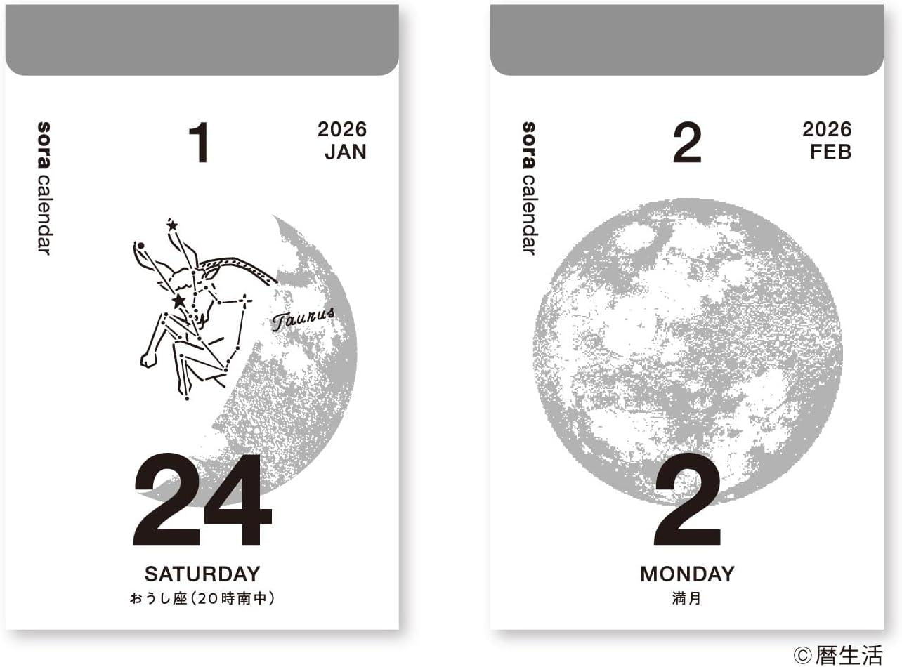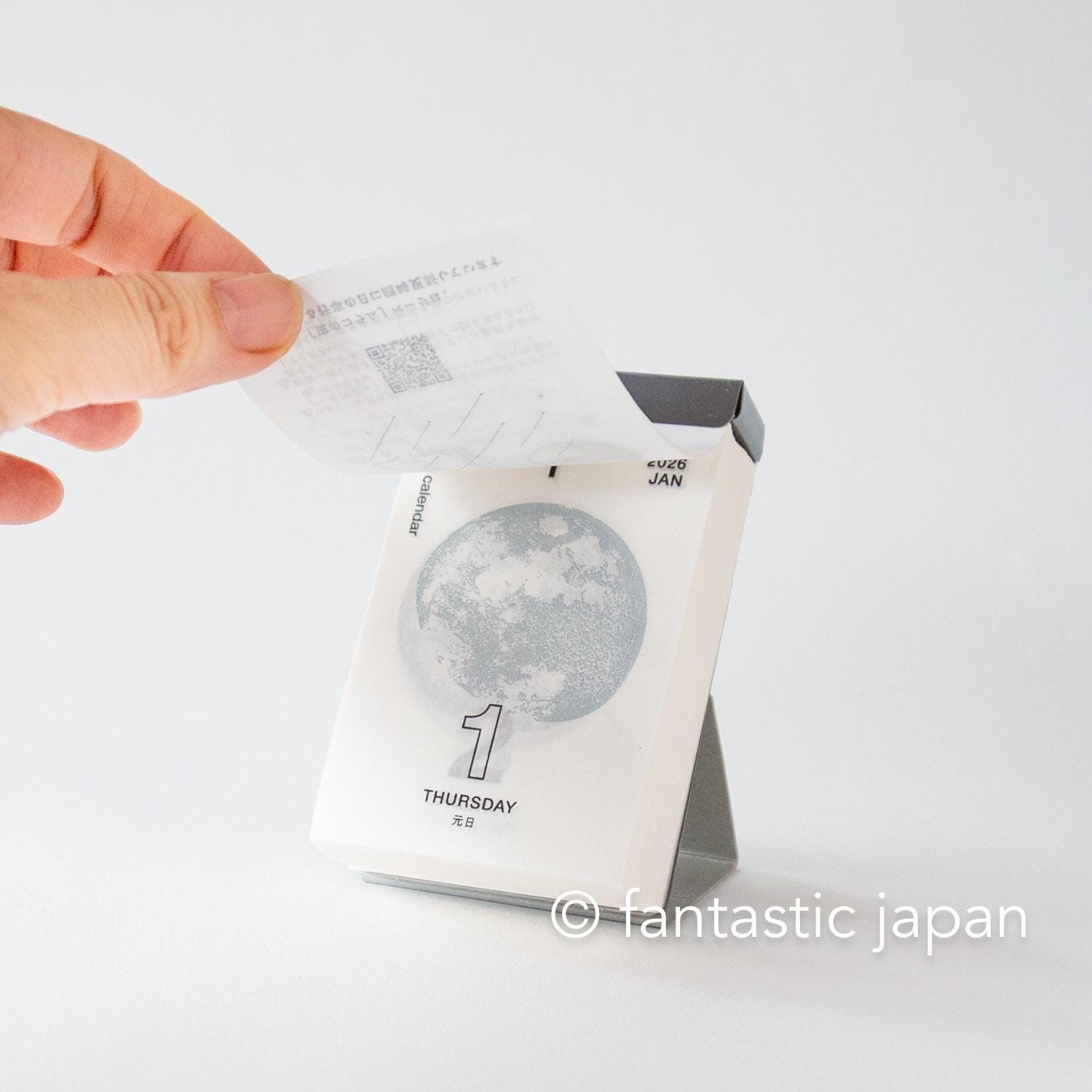 The shape of the moon for each day is designed on the center of each page, so that when you turn the page, it looks the same as it did yesterday, but it is definitely different. When you turn over a page, you can feel the beginning of a new day. You can even see the day ahead of you through the thin next paper. Please enjoy the gradual change of the moon.