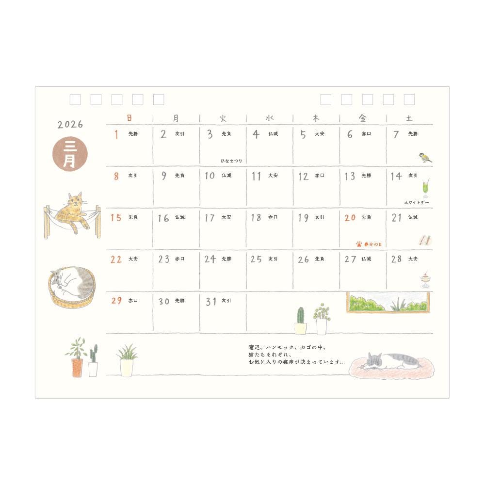 A stylish and easy-to-use desk calendar featuring charming illustrations of cats that change every month. Enjoy the passing seasons together with adorable feline companions. The soft, heartwarming cat illustrations are drawn by illustrator Sayo Koizumi, a devoted cat lover. The 2026 theme is “Koizumi’s Family Cats.”