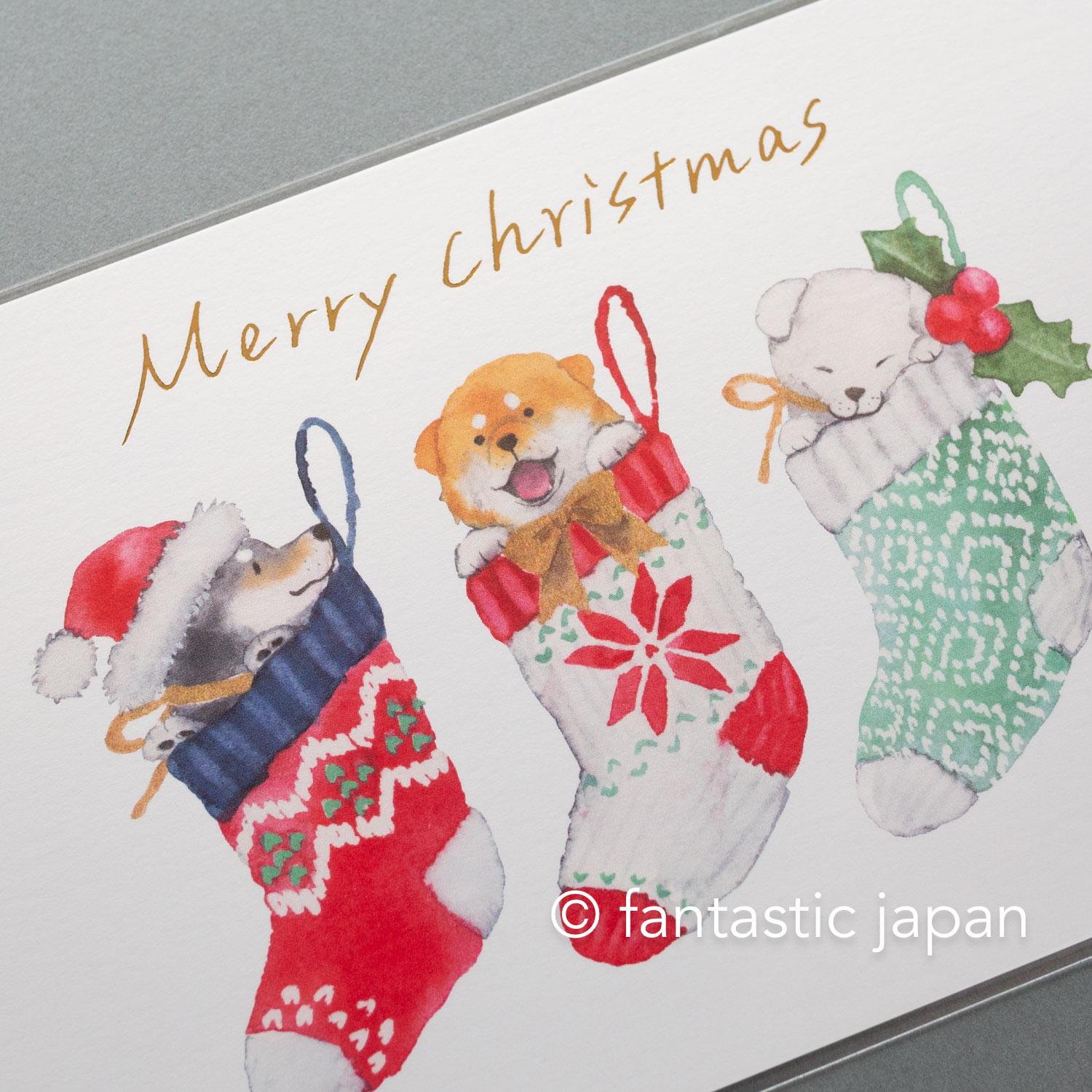 Murata Natsuka post card -Shiba Inu in a Christmas Stocking-