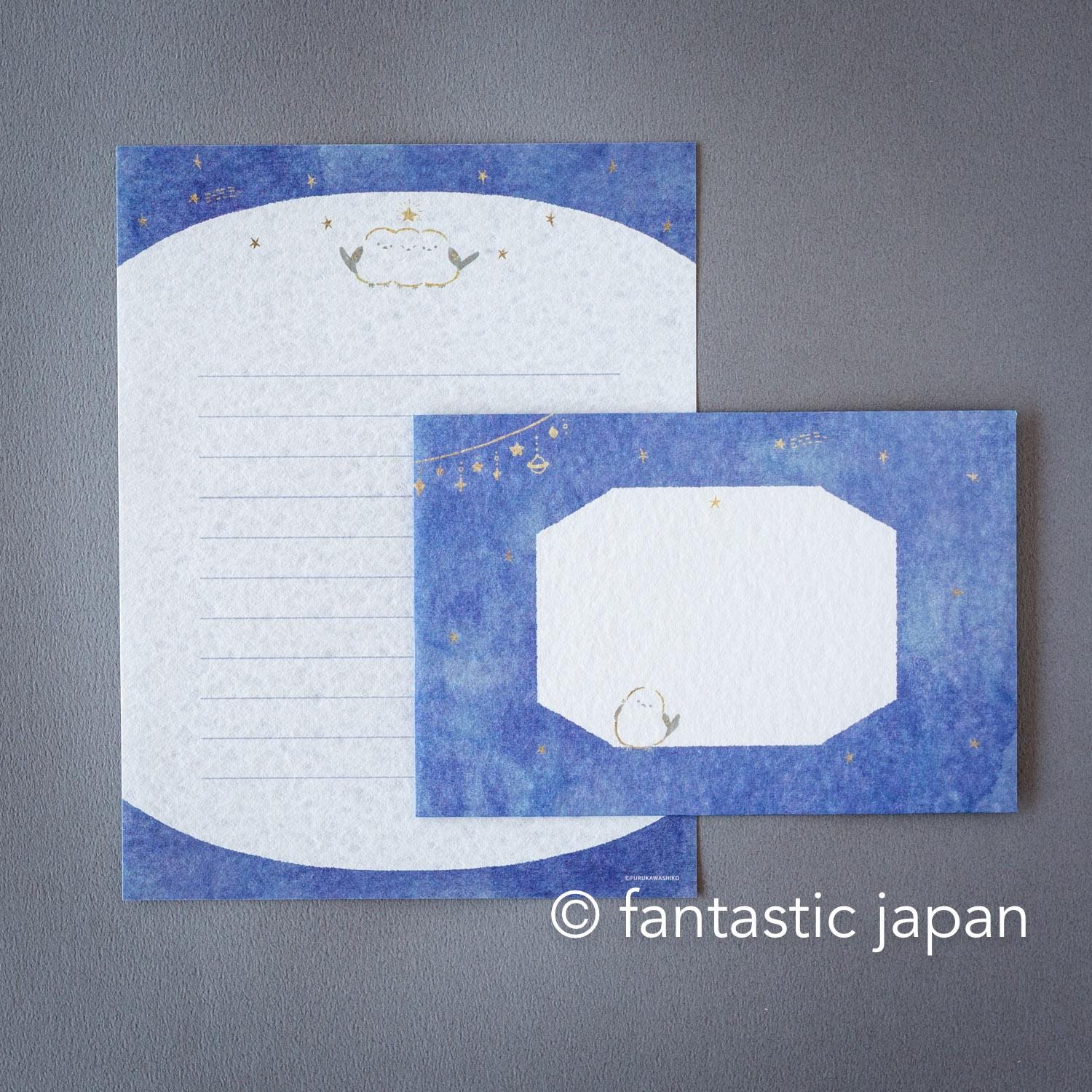 Japanese washi letter set -Long tailed tit and Stars-