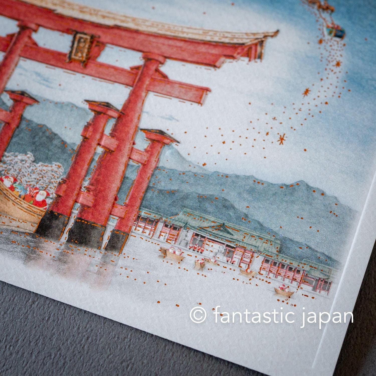 Christmas card / A tiny Santa traveling through Japan -Miyajima-