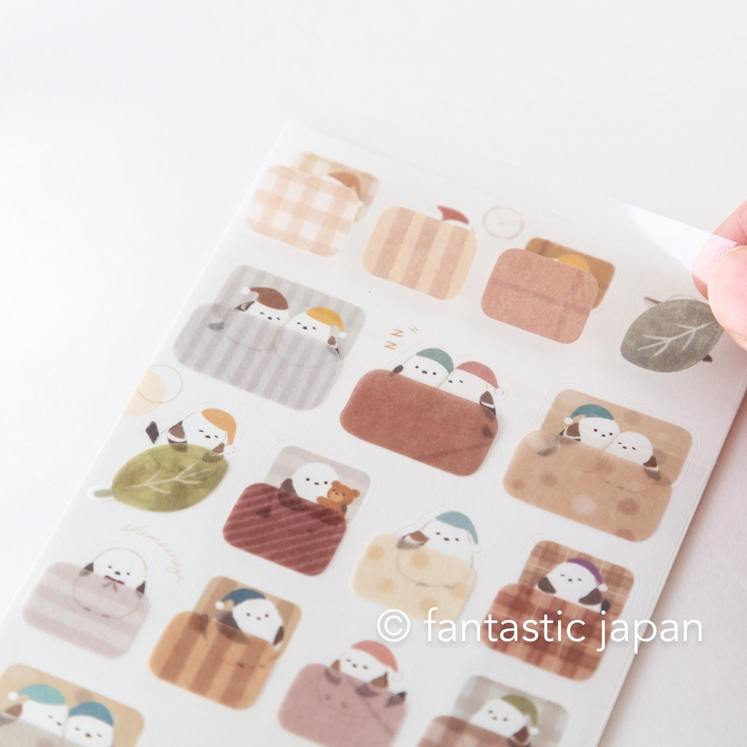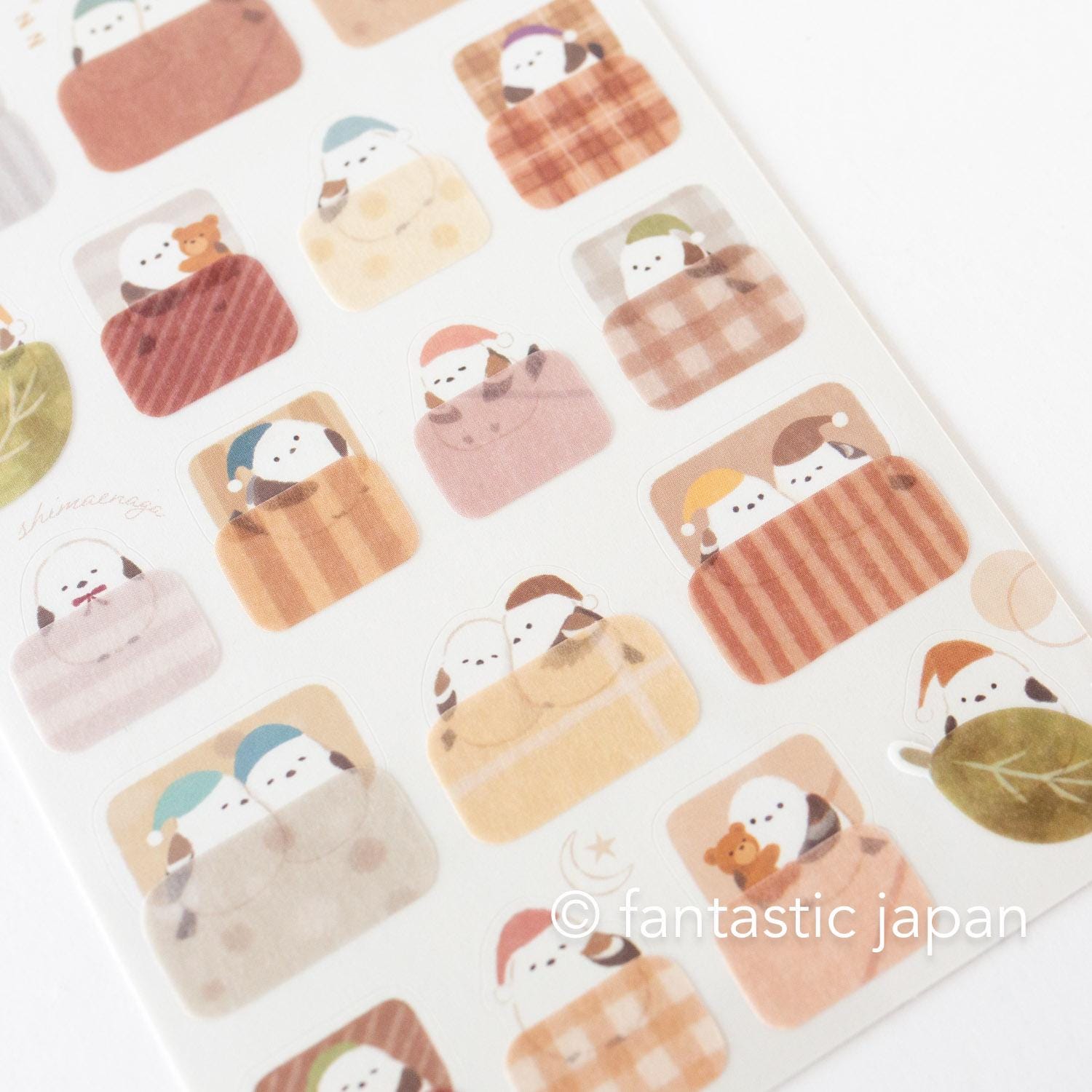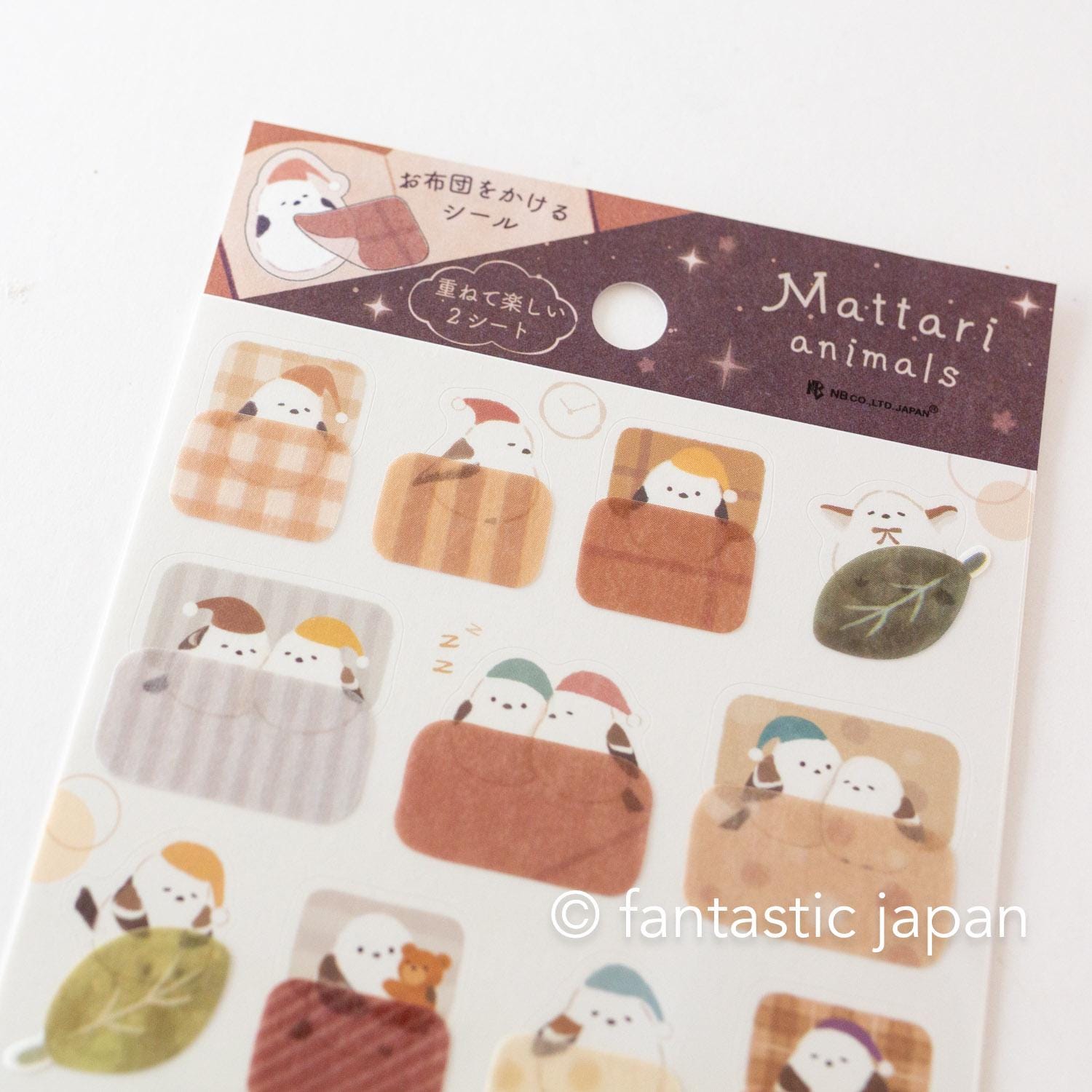 This sticker set includes two designs: cute animal stickers and futon (blanket) stickers.