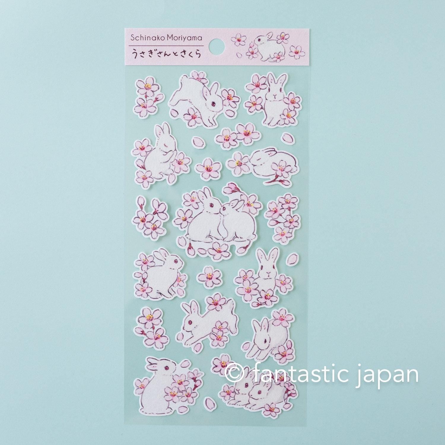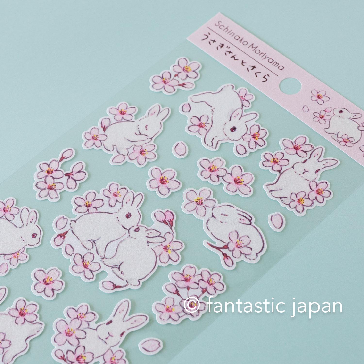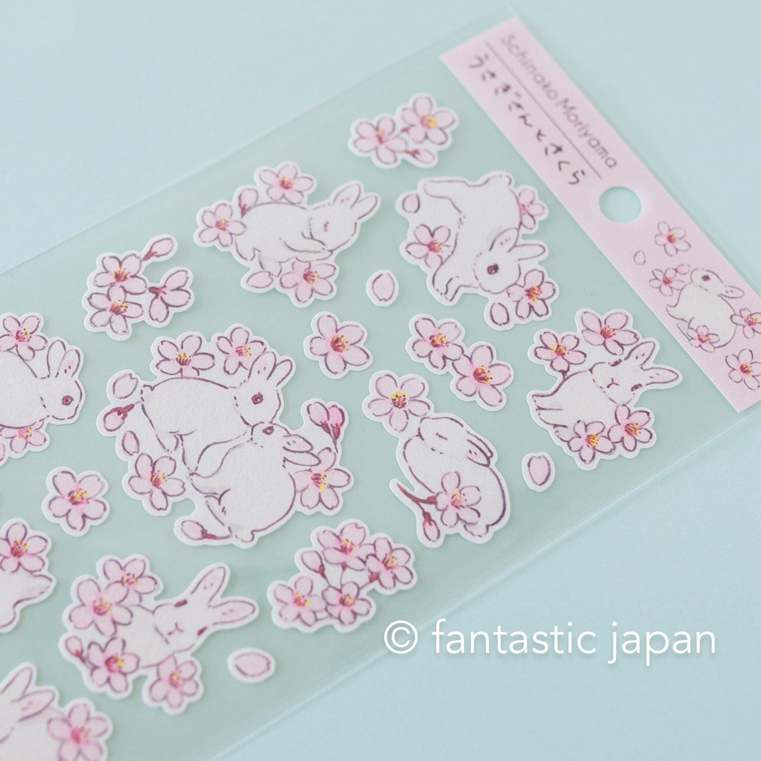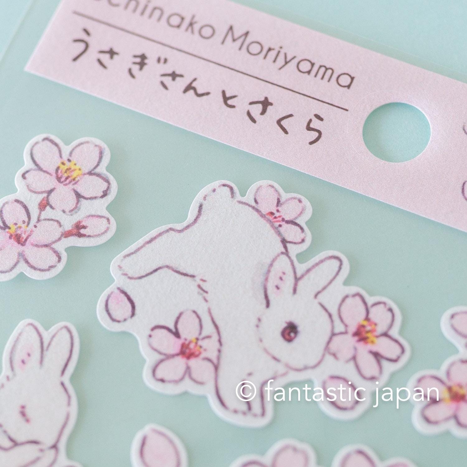 Schinako Moriyama washi sticker -Bunny and cherry blossoms-