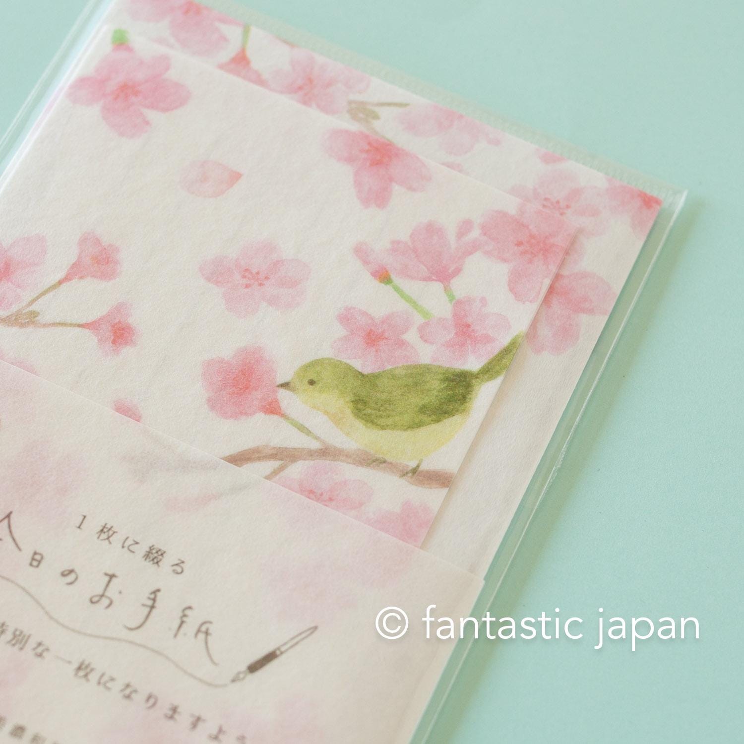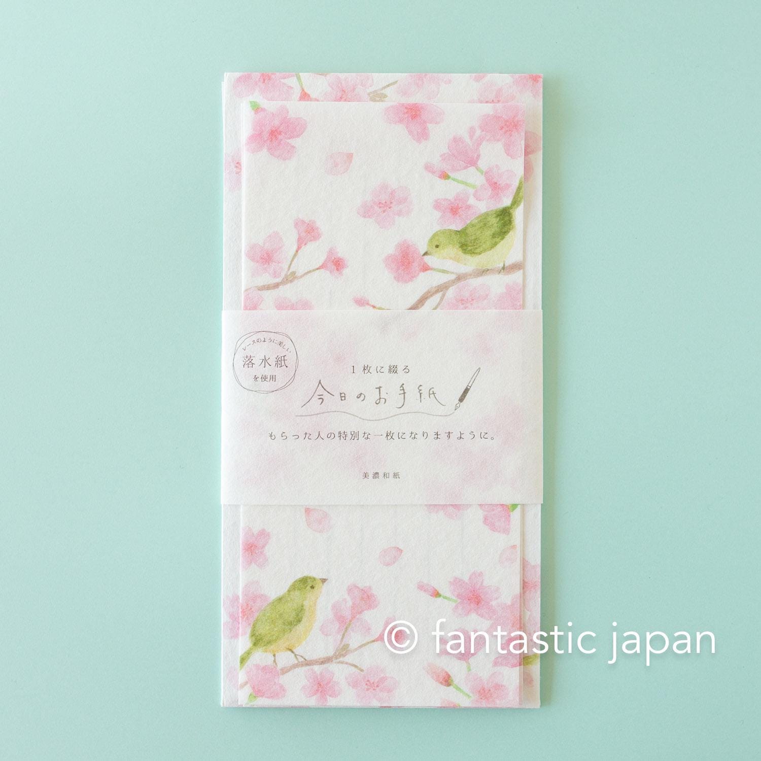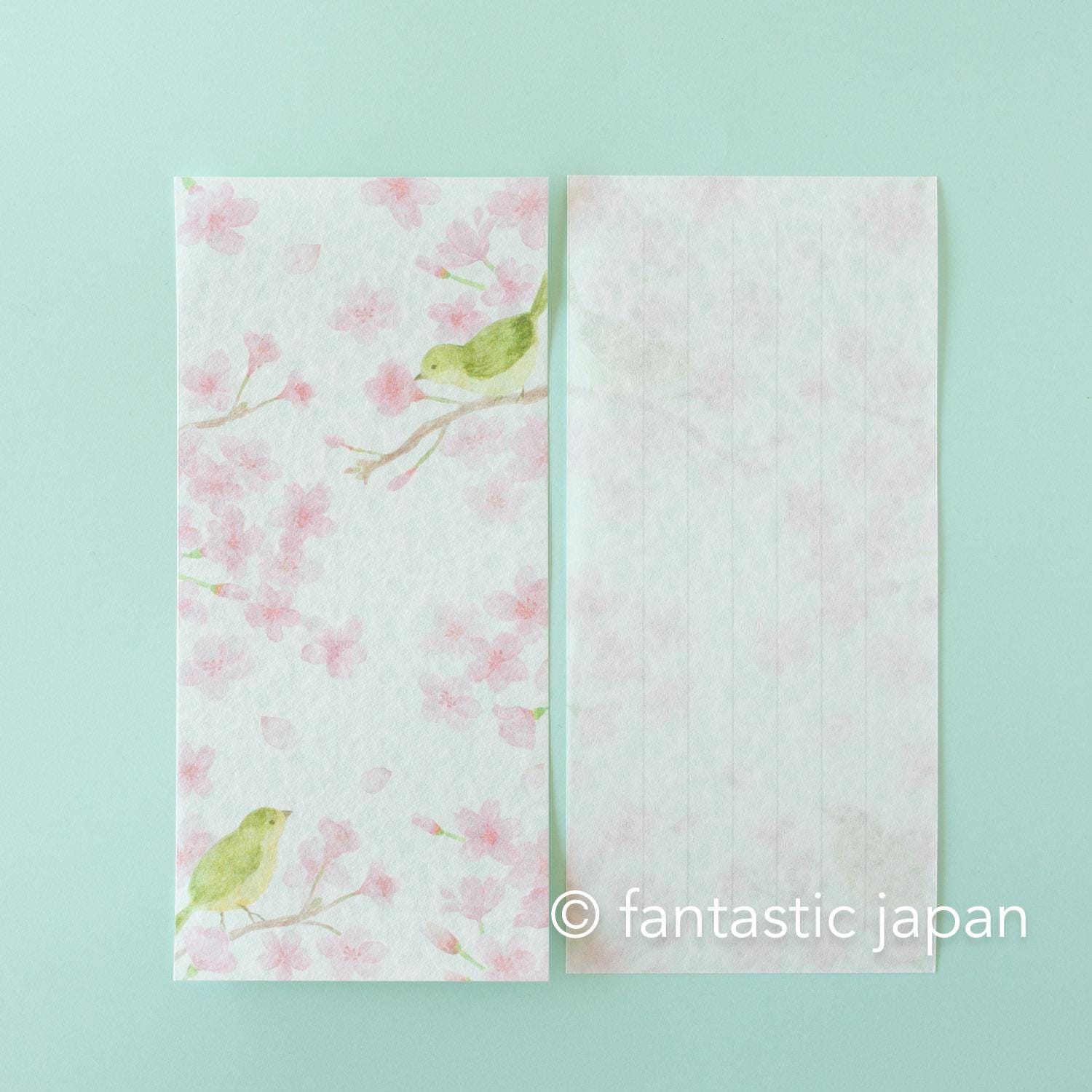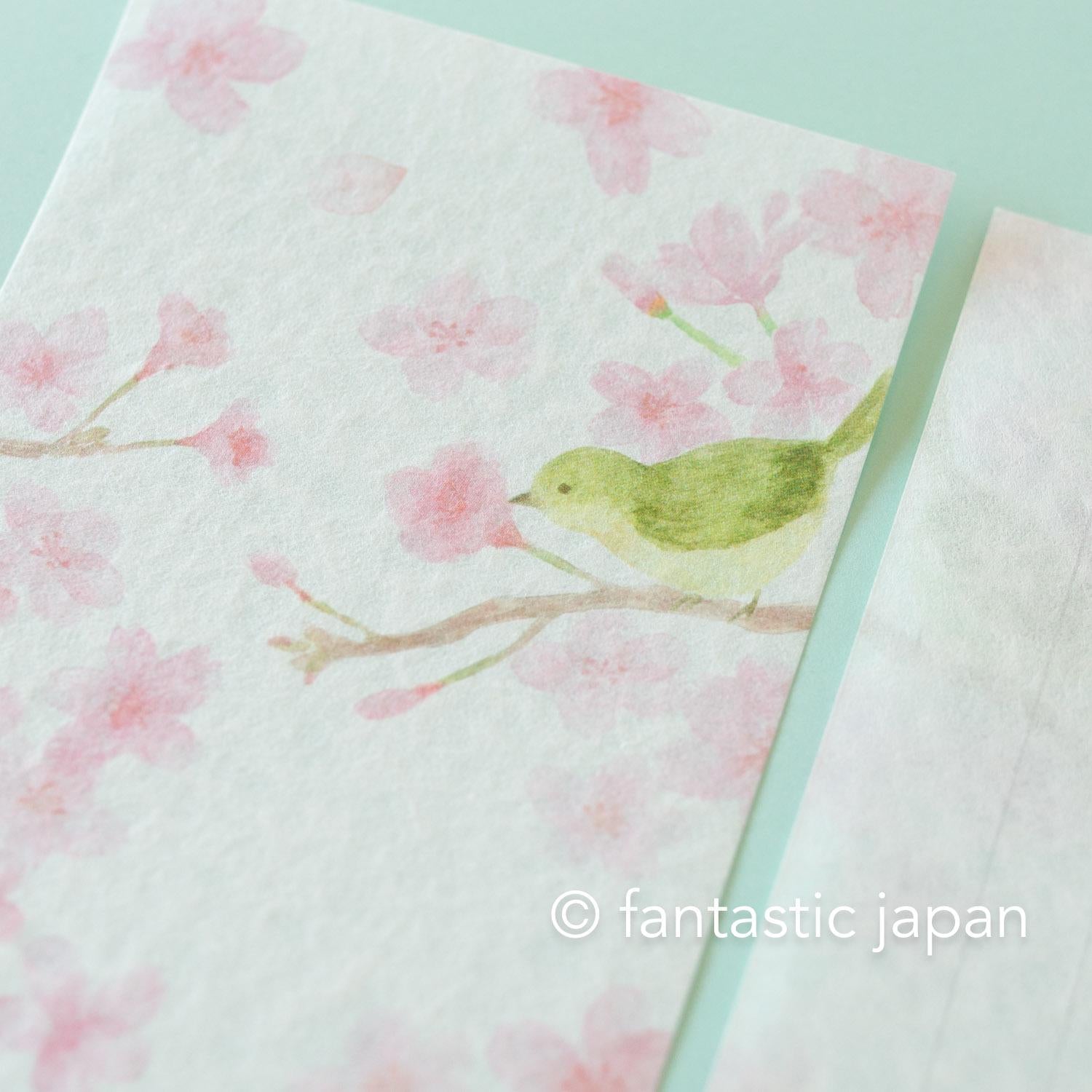 Japanese style washi letter set -Cherry blossoms and a bush warbler-