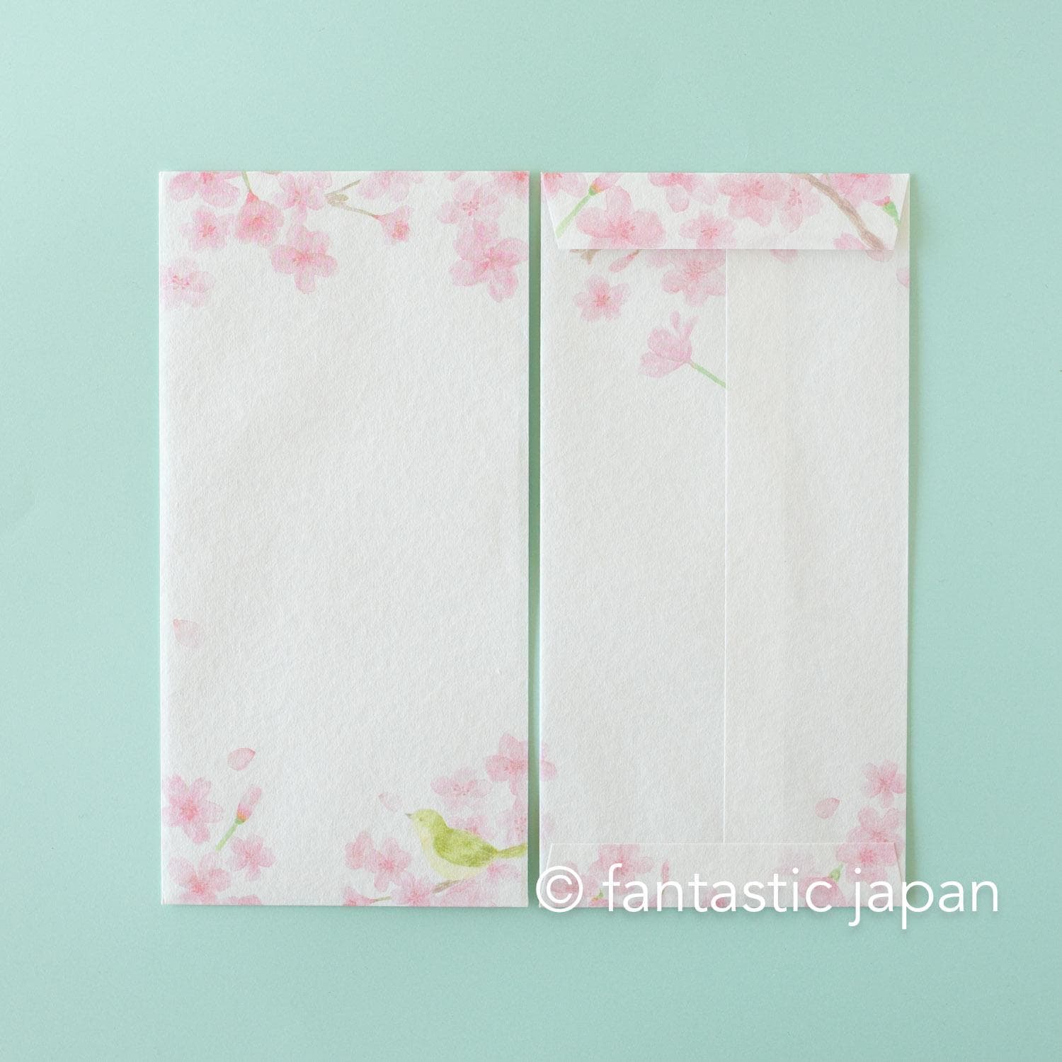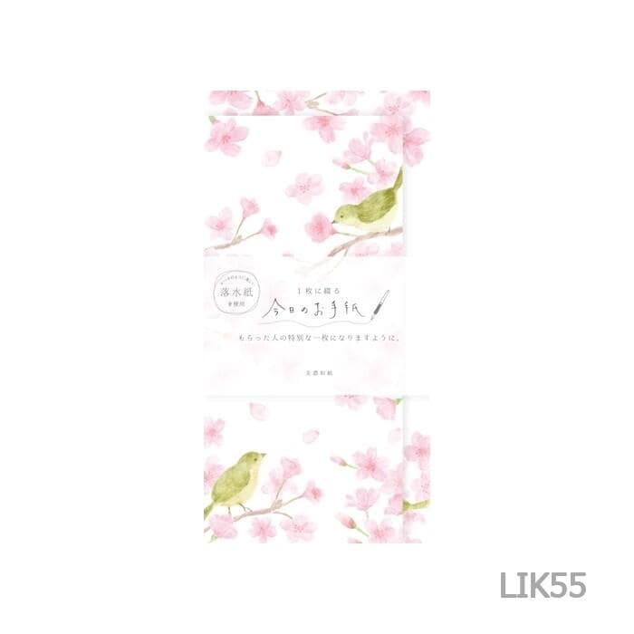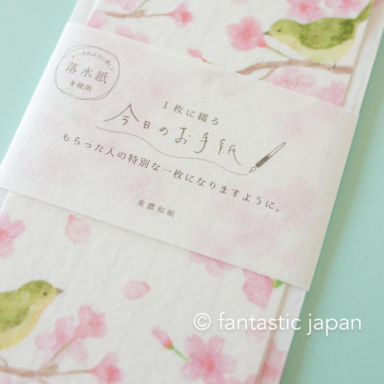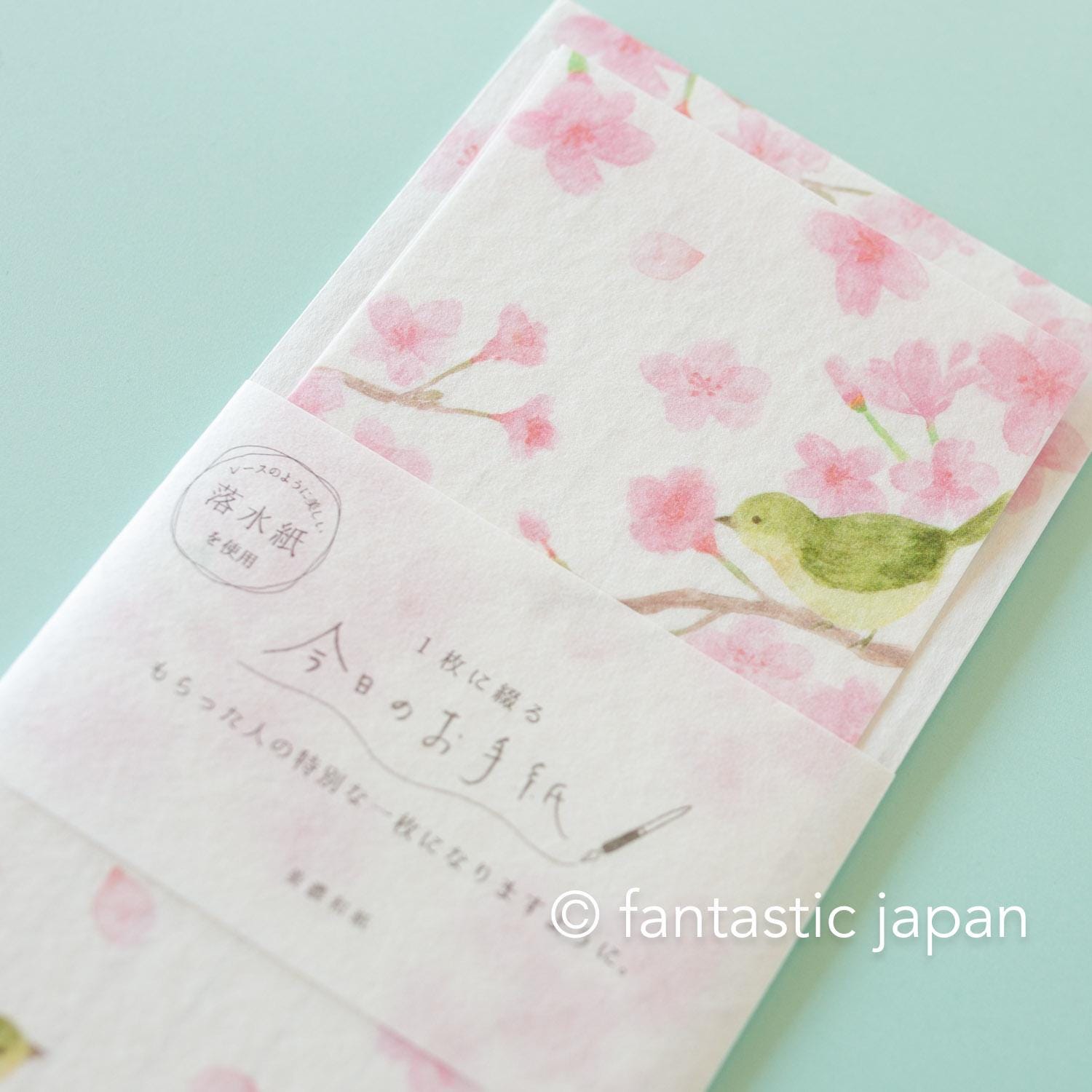 Japanese style washi letter set -Cherry blossoms and a bush warbler-